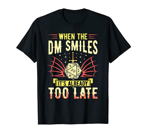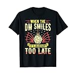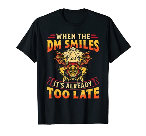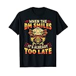 When The DM Smiles It’s Already Too Late – A funny RPG and Dragon Design with a Dragon in the Role Play. For Every Gamer and Role Player Who enjoys Role Playing and Making he Adventure in the Dungeon Exciting. Best always roll a 20 with the dice or lose.